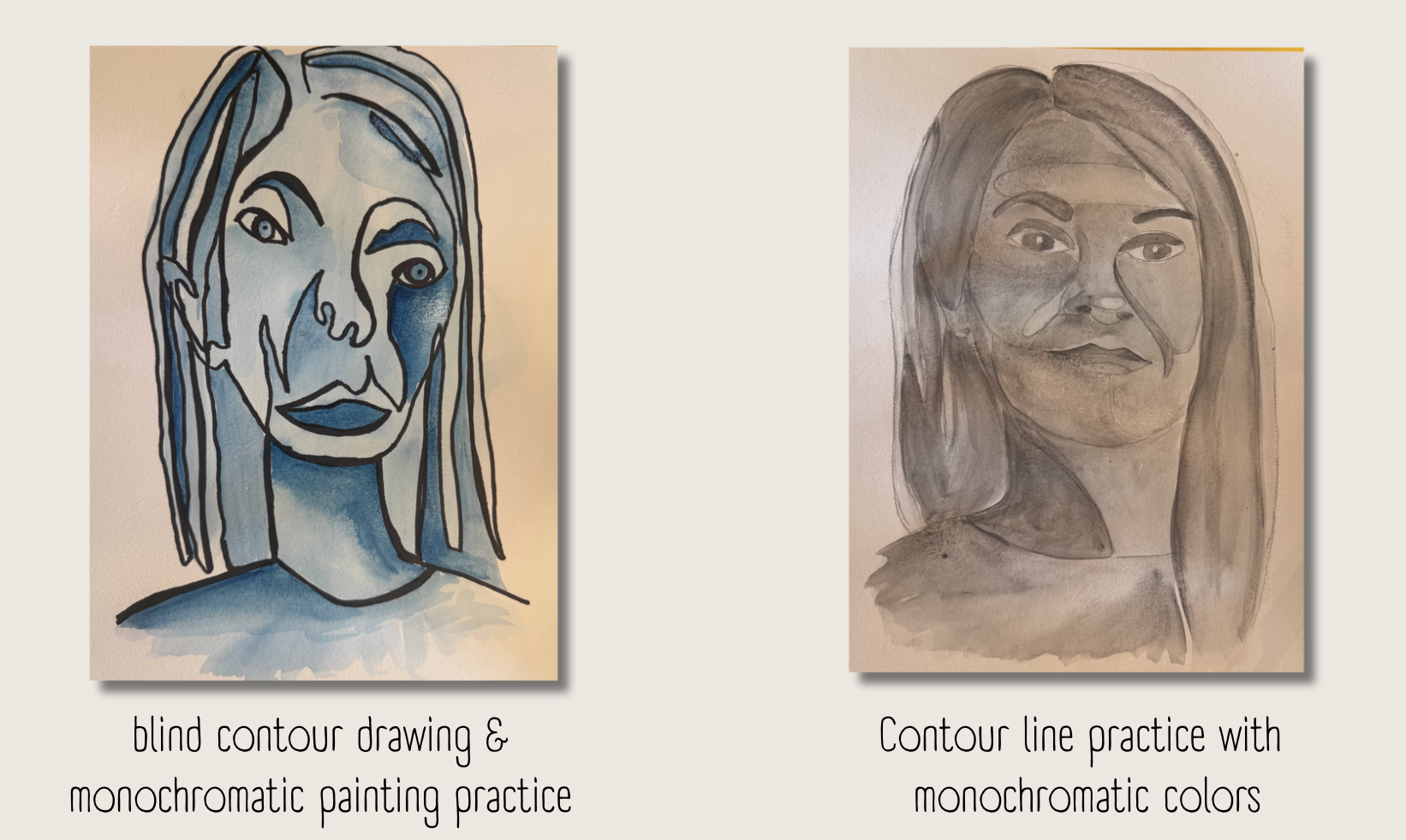 DAY 10: Lesson 10: Painting the Face blind Contour Lines with Monochromatic Color Scheme